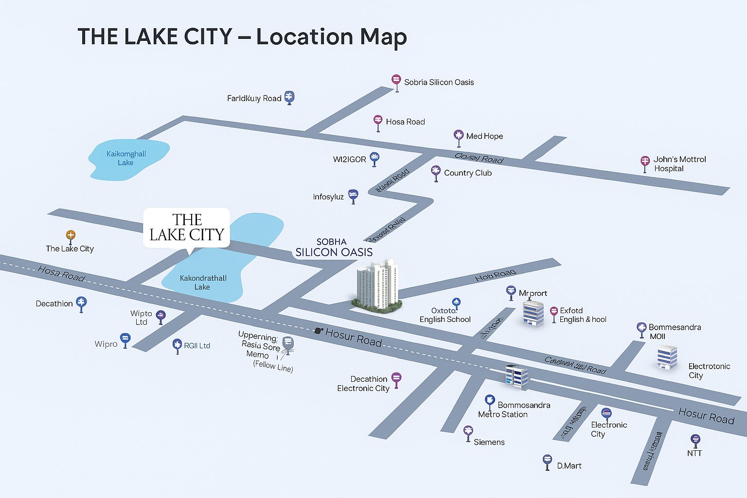 Perfectly located just 5 minutes from Hosa Road Junction, Electronic City Phase 2 & Toll, and close to landmarks like Sobha Silicon Oasis,